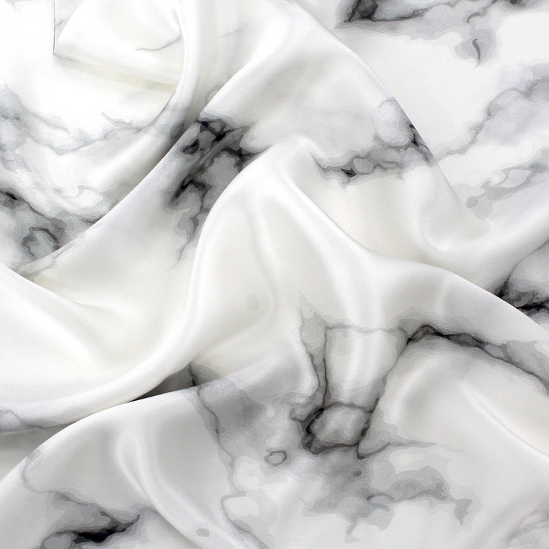 19mm Silk Crepe Satin With Marble Print