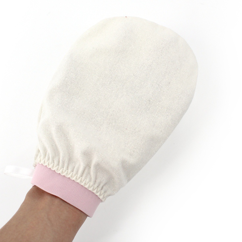 I know you are thinking … how does silk exfoliate? its so soft!but it honestly does and an amazing job at that!Its down to the ancient way the silk is woven allowing a gentle yet deep exfoliation.Made with 100% raw silk which contains 18 kinds of amino acids which are super kind to our skinNo need for body scrubs anymore!Our silk exfoliating mitt will visibly remove dead skin giving a deep exfoliation resulting in softer, smoother and clearer skin.(Also a fantastic fake tan prep and remover with little effort.)Using regularly can also help with ..Stretch marks and scarring,Preventing ingrowing hairs, exfoliating will help release trapped hairs and prevent hair from curling backwardsAbsorption of products Removing dead skin will help skin products be absorbed more efficiently.Blackheads and clogged pores Our mitts can be used on the face just be more gentle to start. it will take away any excess dry skin and sebum and allow your skin to breathe preventing blocked pores.Directions Stand in a hot shower or bath and soak for at least 10 minutes to soften your skin. No soap is needed and may reduce the affectiveness if used before exfoliation.Wet the mitt to expand the fibres and squeeze out any excess water.Step out of the water (make sure your skin is damp and not soaking wet for a better result)Use firm upwards and downward strokes across the skin, increase pressure if desired.After exfoliating is complete, wash off the dead skin soap can now be used.Rinse out the mitt or use a mild soap and leave to dry naturally. Do not put in the washing machine, replace mitt every 3-6 months or as needed.Do not use on irritated or broken skin, active acne, breakouts or open wounds.