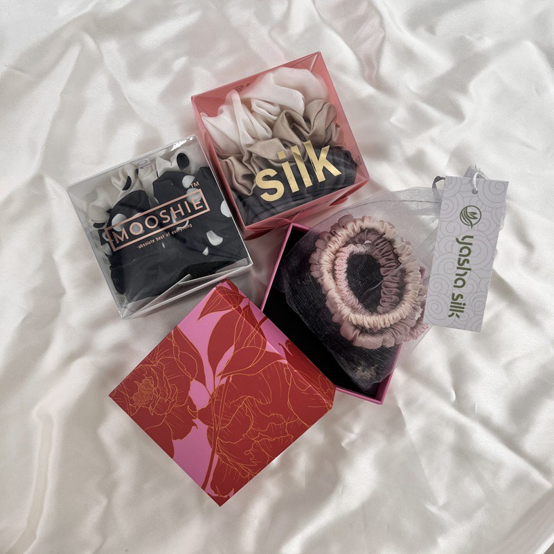 Packaged in an elegant gift box, our silk scrunchies make a wonderful present for birthdays, anniversaries, Christmas, or any special occasion. They are a thoughtful and practical gift for friends, family, or loved ones who appreciate style and quality. The gift – worthy packaging, combined with the luxurious nature of the product, makes these silk scrunchies stand out as a memorable and cherished gift.