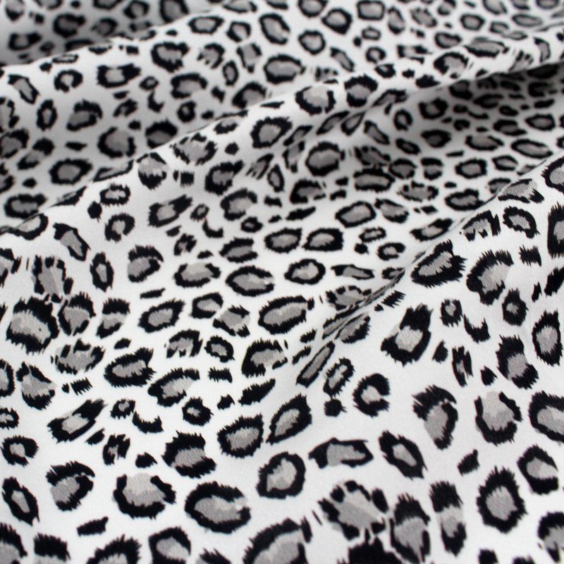 Silk Satin Black & White Leopard Print
